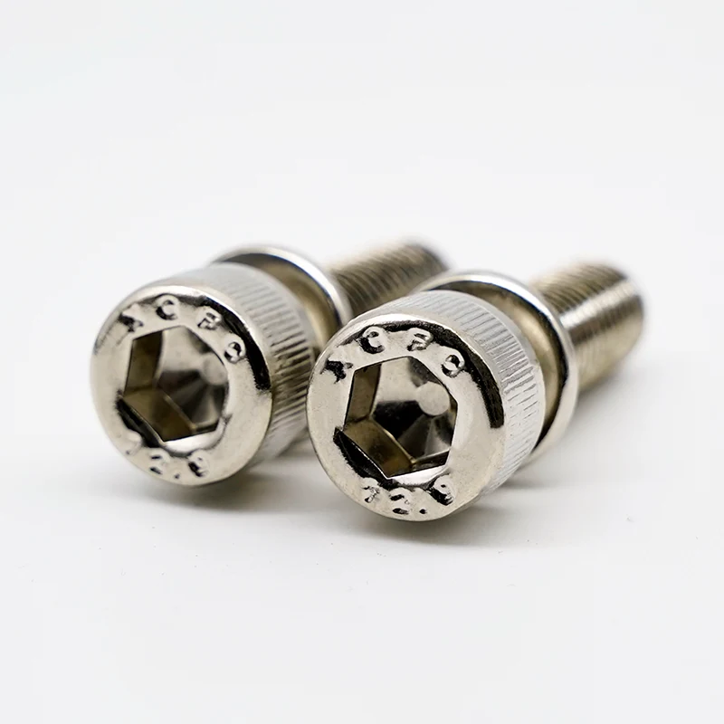 Slovenski JINSIXI's Nickel-plated Hex Socket Head Cap Screws with Spring Washers combine a DIN 912 socket head cap screw with a pre-assembled spring washer. The core function of the spring washer is to provide a continuous frictional force after tightening, resisting loosening caused by vibration. It performs better than ordinary flat washer screws under dynamic loads or thermal expansion and contraction conditions.